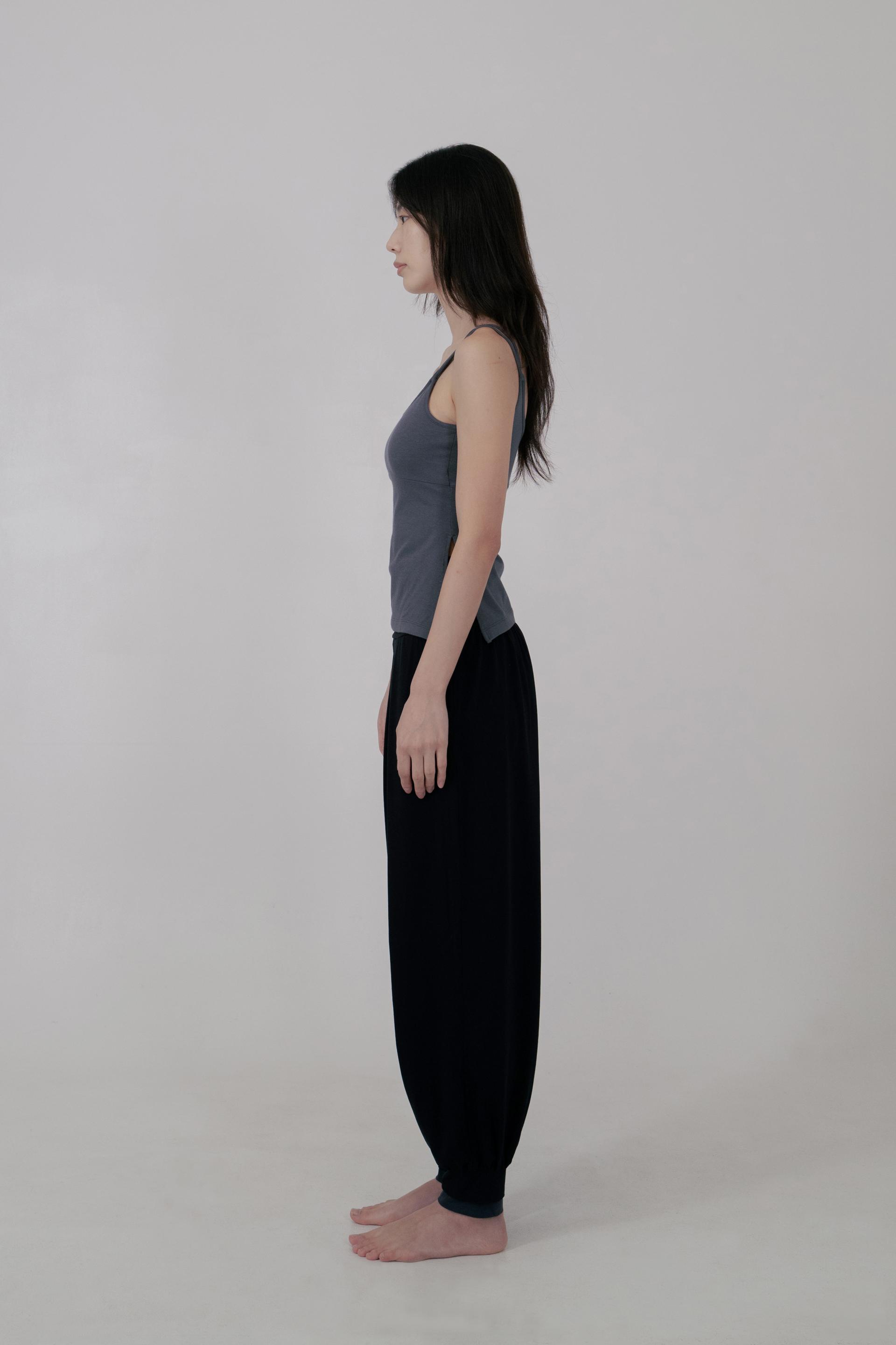 - 꾸준히 인기 있는 High Waist Deep Tuck Pants 1 캐리오버 제품으로, 밑단의 배색 원단이 발목을 더 잡아주어 활동성을 높임