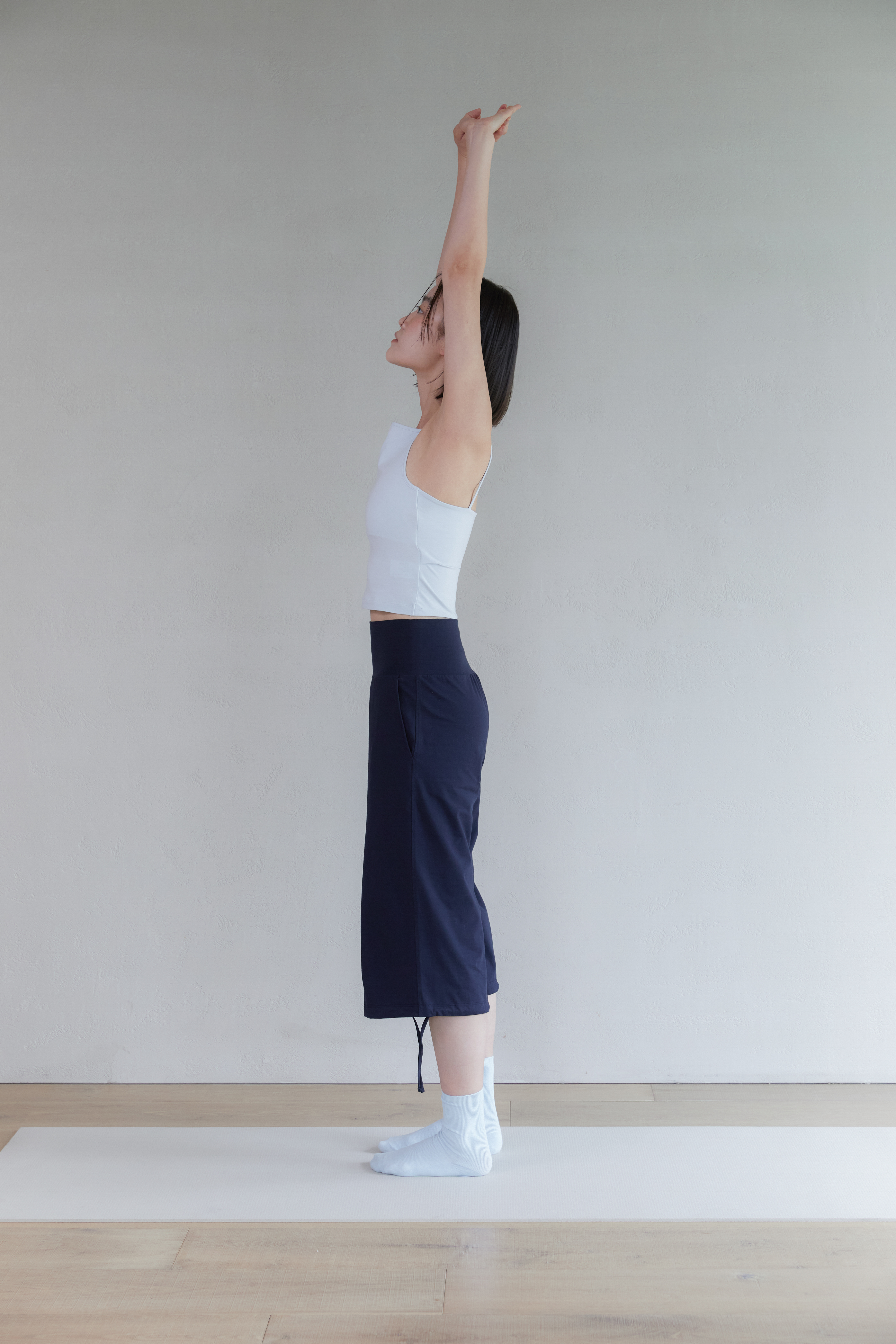 - 7부 기장의 디자인으로, 밑단을 스트링으로 조여 요가 수련시 편안함을 더함