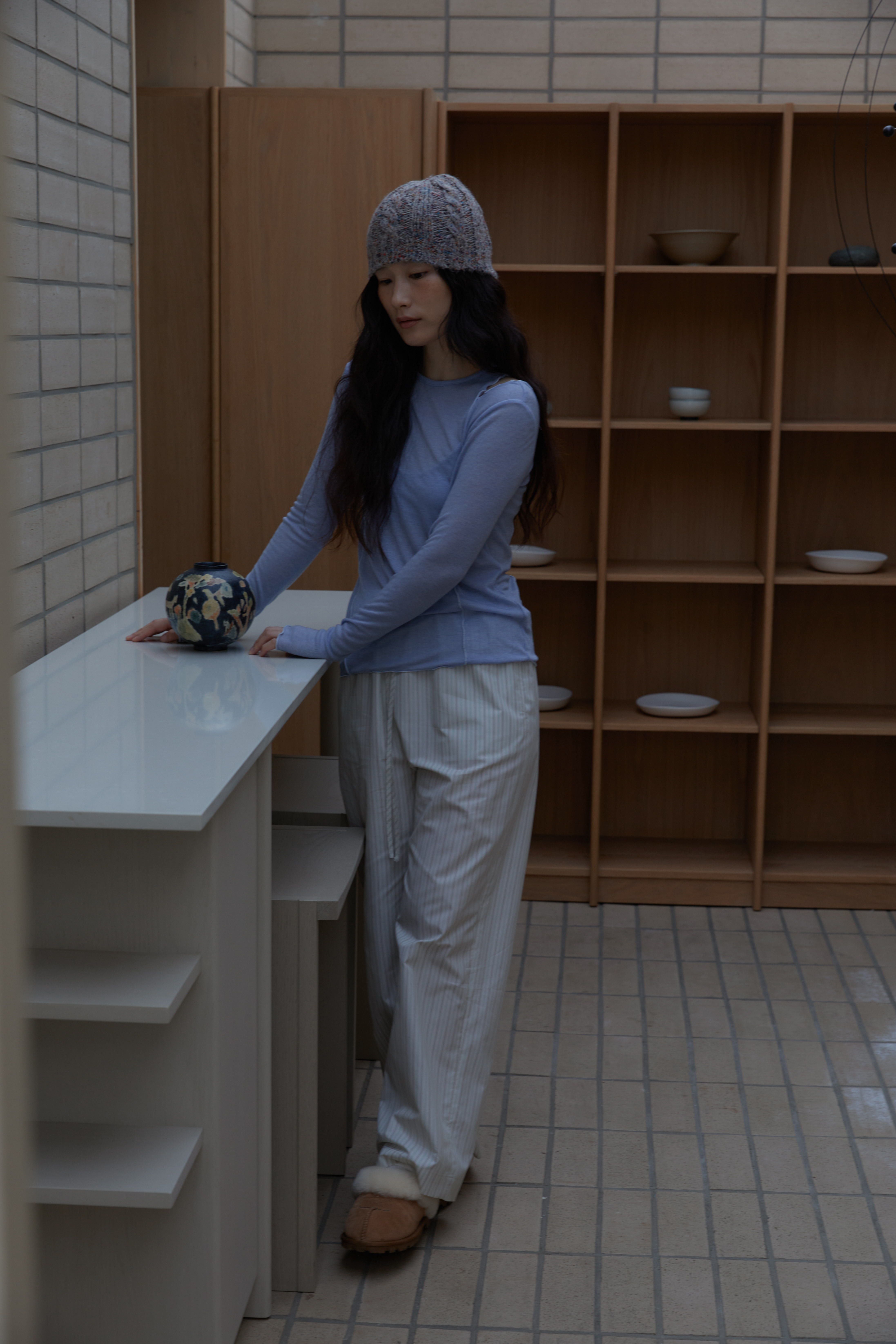 - 하의는 넉넉한 사이즈의 스트레이트핏과 여유로운 텐션감의 허리 밴딩으로 다양한 체형 커버 가능
