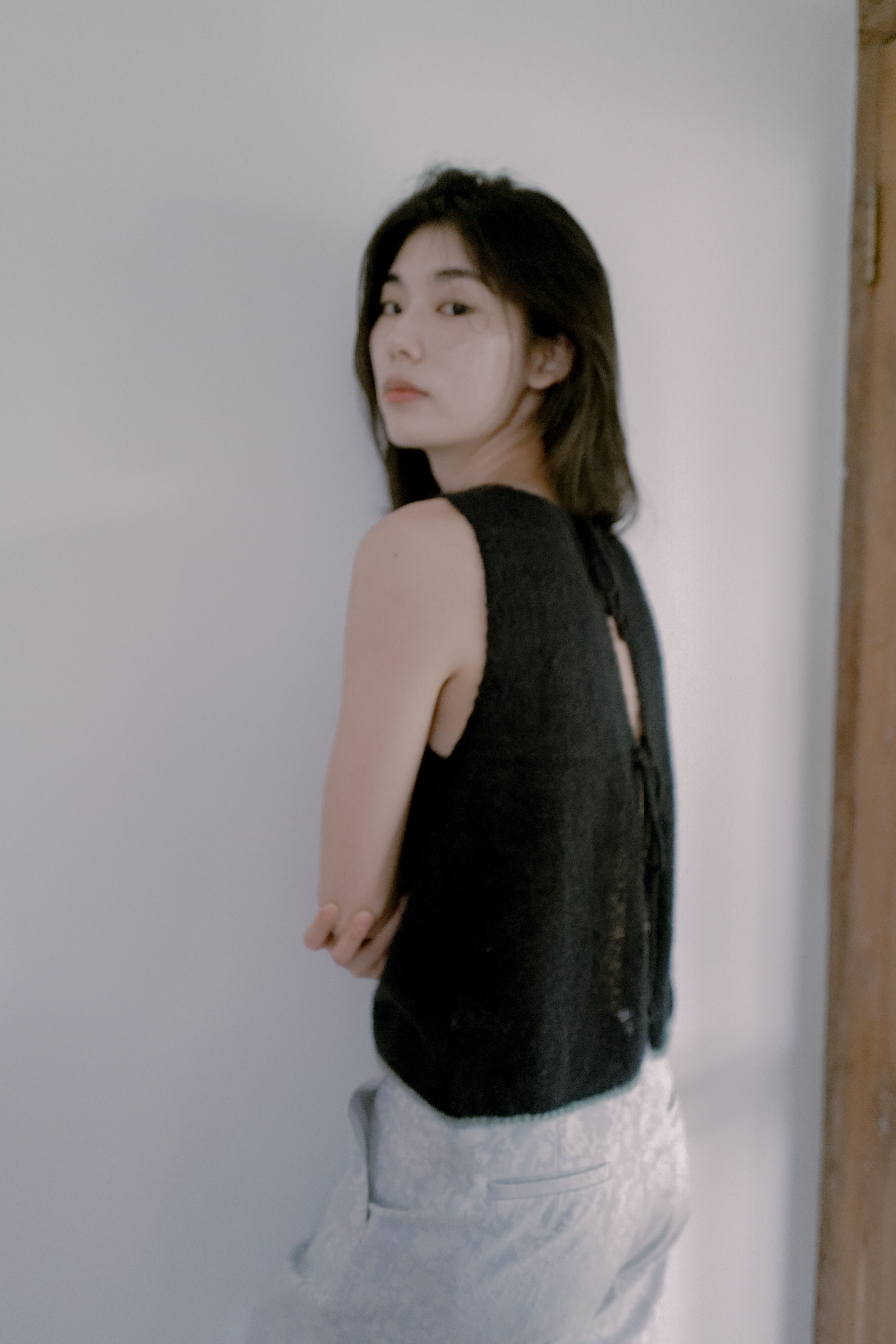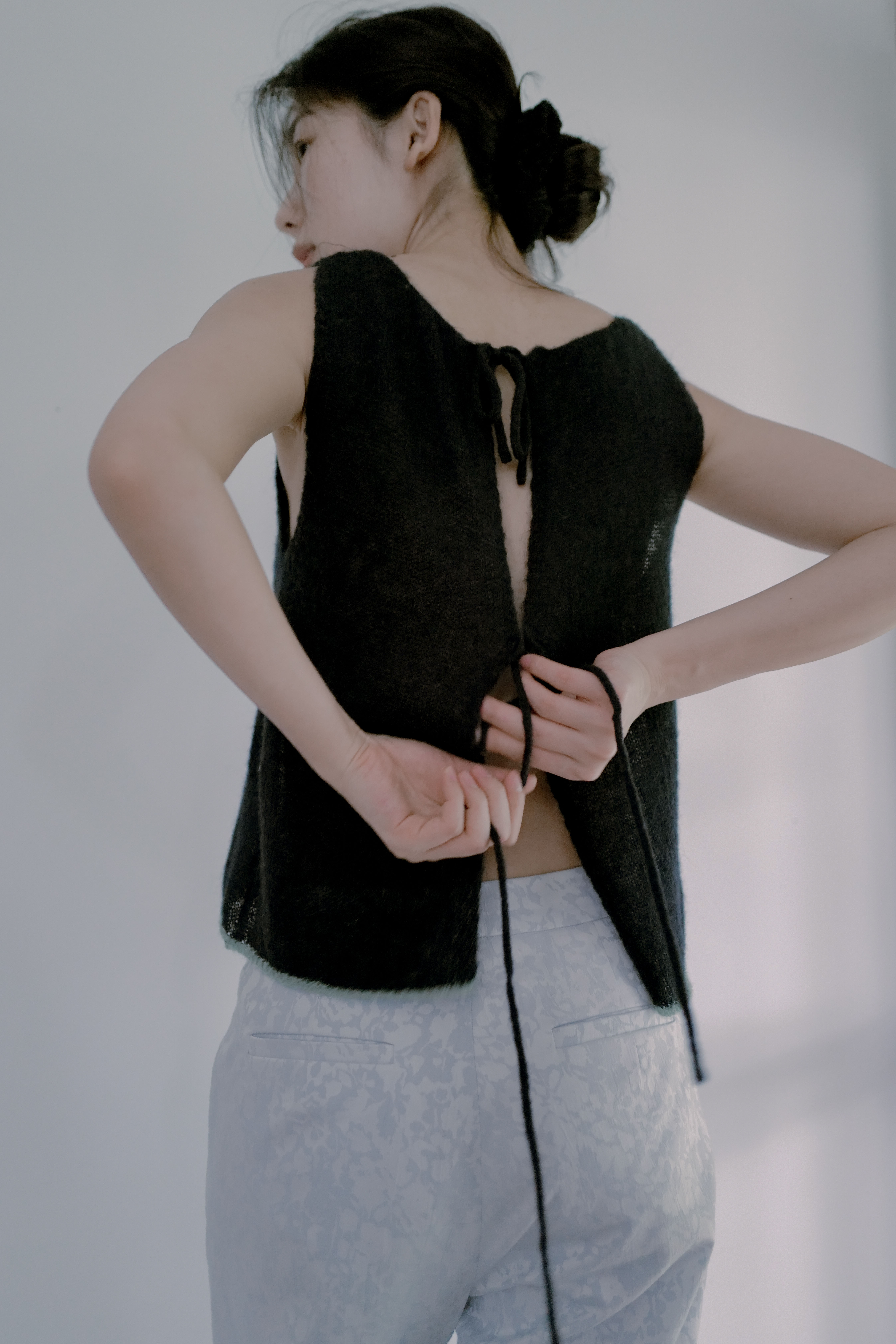 Back Ribbon Sleeveless Knit (Deep Navy)
